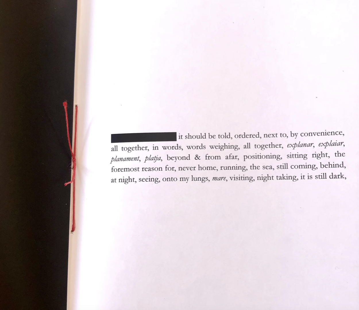 Jèssica Pujol (Barcelona, 1982) is a poet, translator and researcher, currently working as Assistant Professor at the University of Santiago de Chile. She writes and translates in Catalan, English and Spanish, and edits the magazine Alba Londres. Mare is a visual experiment which works as a fragmented long poem, around the issue of mare/ mother, which also evokes sea, sea waves, nightmares.